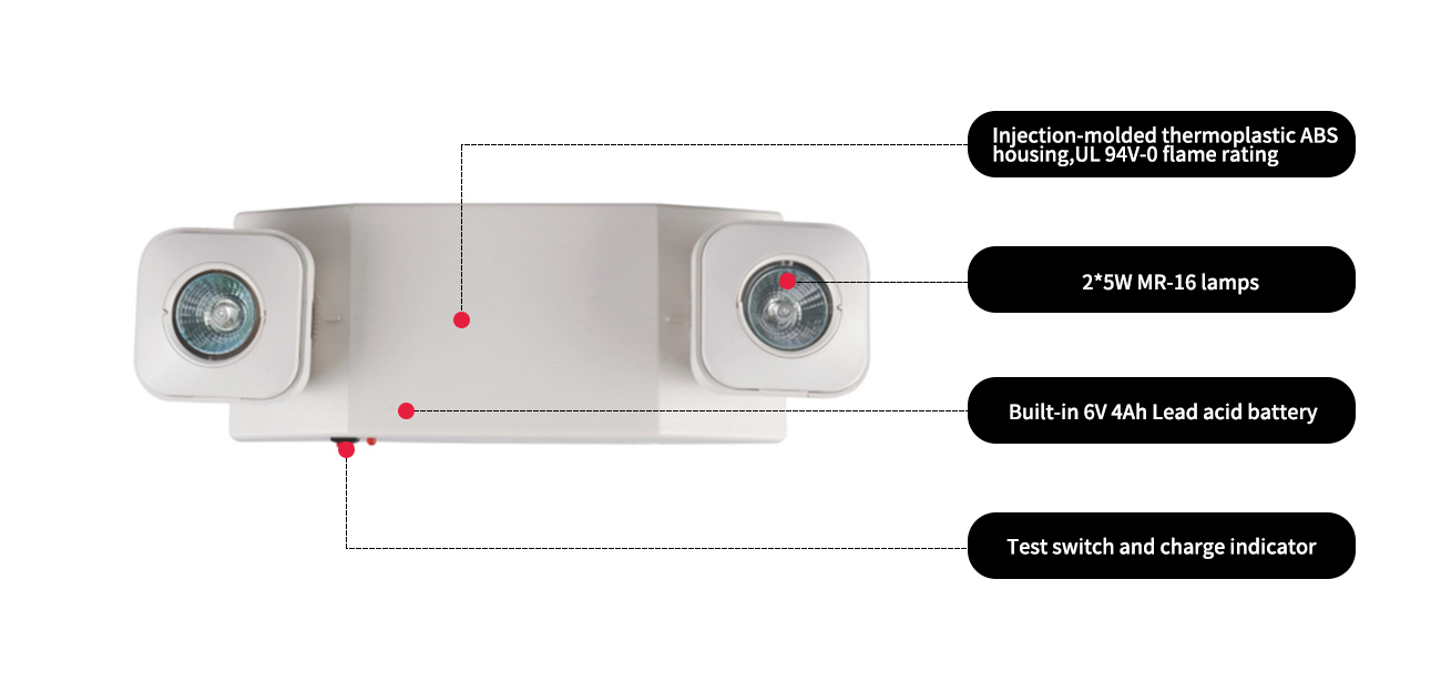 Domov / Produkt / Pohotovostné svetlo / Núdzové svetlo s dvoma hlavou / JEU2 2x5W MR-16 Núdzová lampa