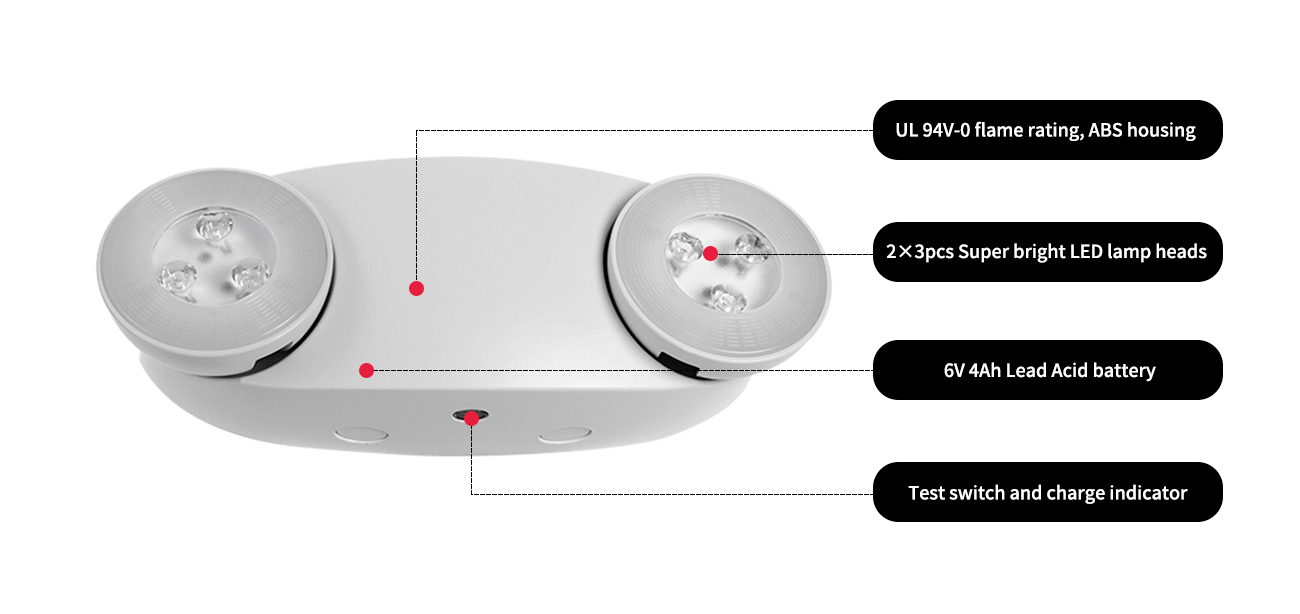 Domov / Produkt / Pohotovostné svetlo / Núdzové svetlo s dvoma hlavou / JLEU6 UL/CUL 600LM VYSOKÁ VÝSLEDKA DUÁLNE HLAVY NOBERNE SVETLO