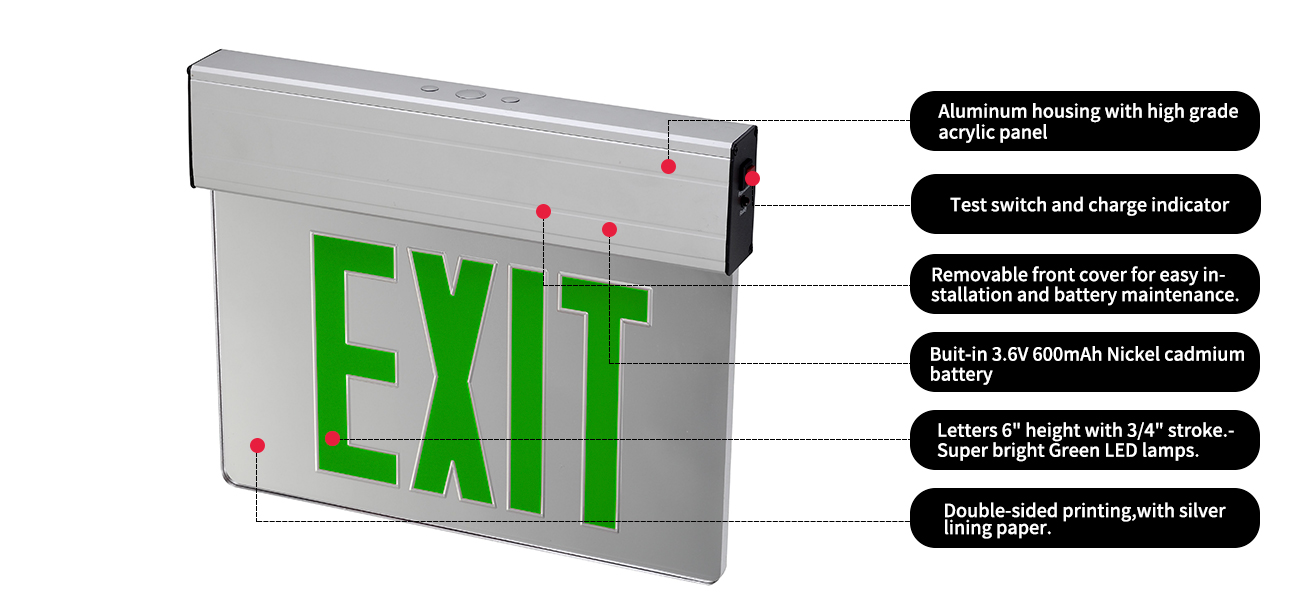 *Osvetlenie - Táto séria výjazdu s rozsvietením okrajov poskytuje osvetlenie LED LED LED. Jednotka je skonštruovaná so zelenou vysokou výstupnou doskou LED.  Spotreba energie je hodnotená na menej ako 3 watty pre modelové jednotky iba AC. Zálohovacia jednotka batérie Spotreba energie je hodnotená na menej ako 1 watts.