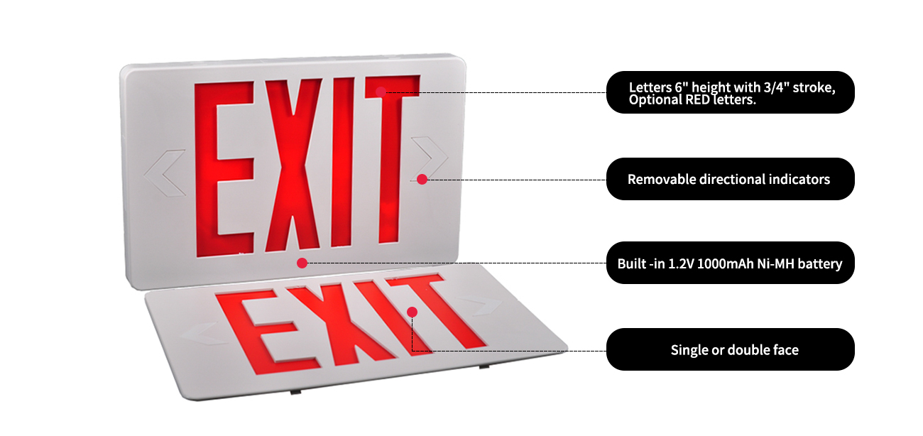 *Osvetlenie - Osvetlenie série LED výstupných značiek sa dosahuje pomocou dlhodobého a účinného ultra jasne červeného LED. Farebný difúzor eliminuje horúce škvrny a pruhy, ktoré poskytujú optimálny výstup svetla.
